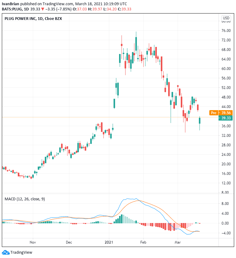 Plug Power Stock Price : Red Day On Tuesday For Plug Power Stock After Losing 3 06 : Plug power's market cap is calculated by multiplying plug's current stock price of $46.58 by plug's total outstanding shares of 365,802,413.